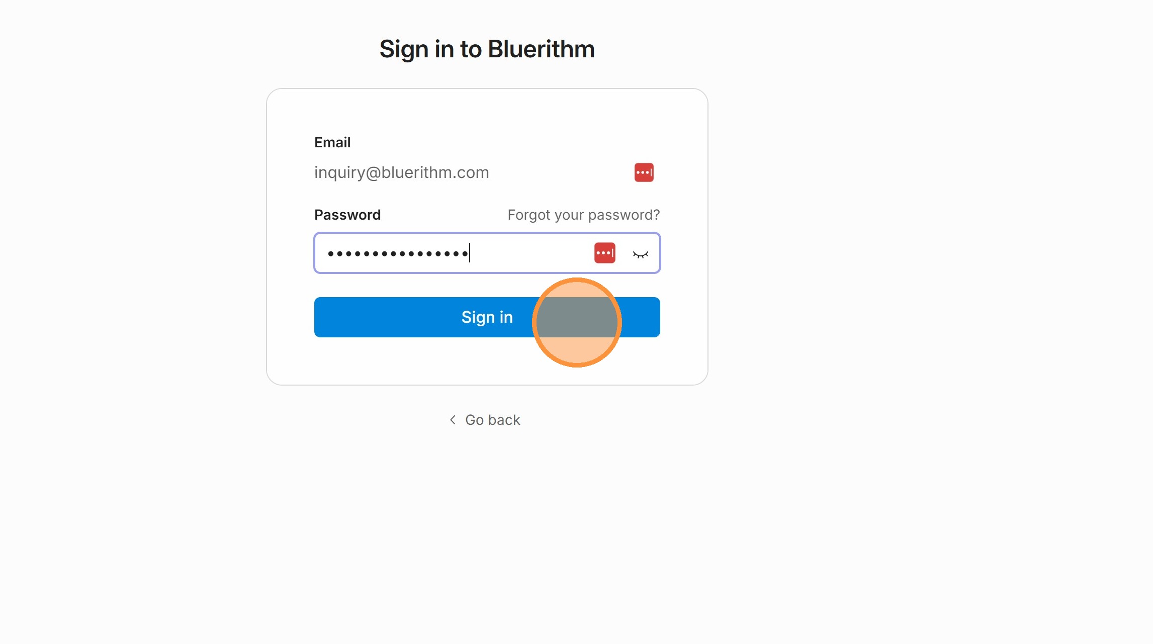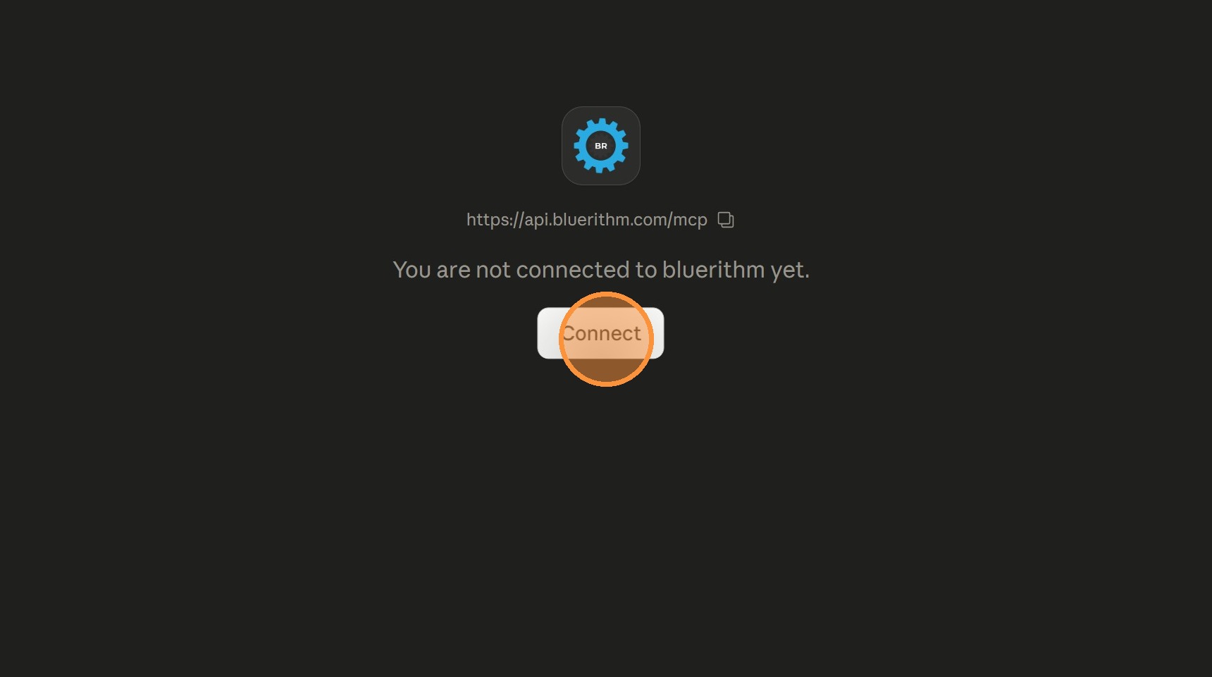 Clicking Connect launches the Bluerithm sign-in page in your browser.