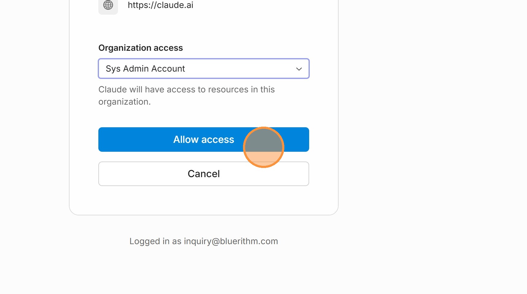 If you have profiles on multiple Bluerithm accounts, select the one you want to connect. If you only have a single profile, this step is skipped automatically.