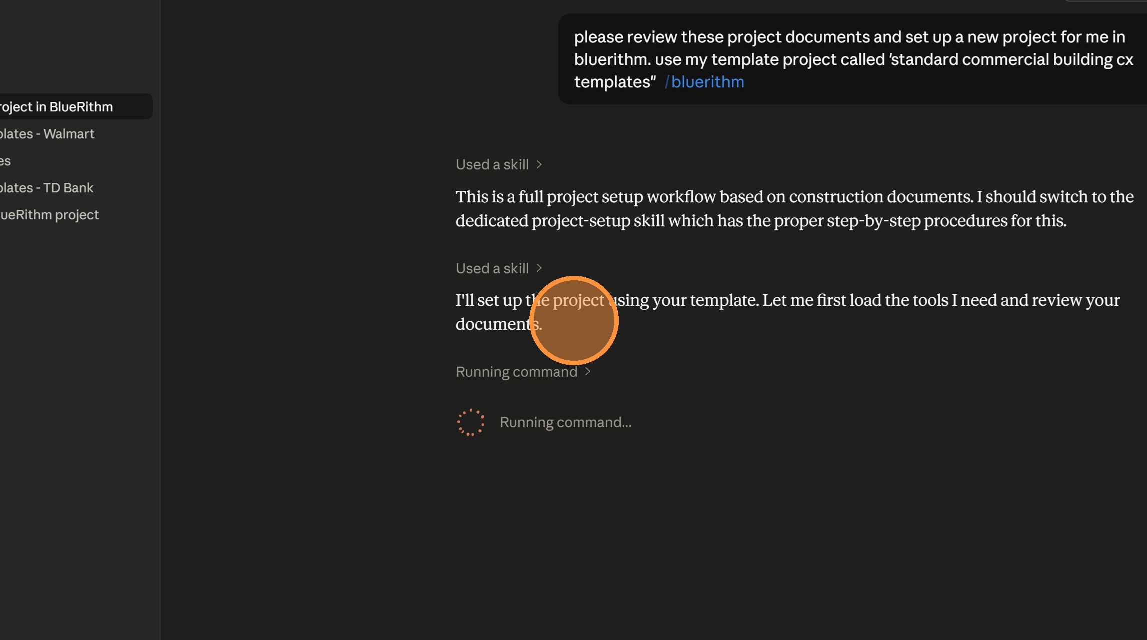 “Please review these project documents and set up a new project for me in Bluerithm.”